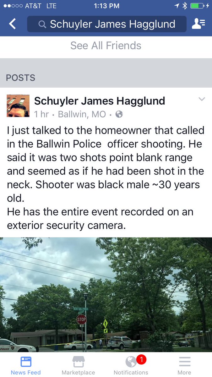 Fox2Now.com reports the suspect, described as a “tall, thin African-American male,” allegedly shot a Ballwin Police Department officer in the neck around 11am.